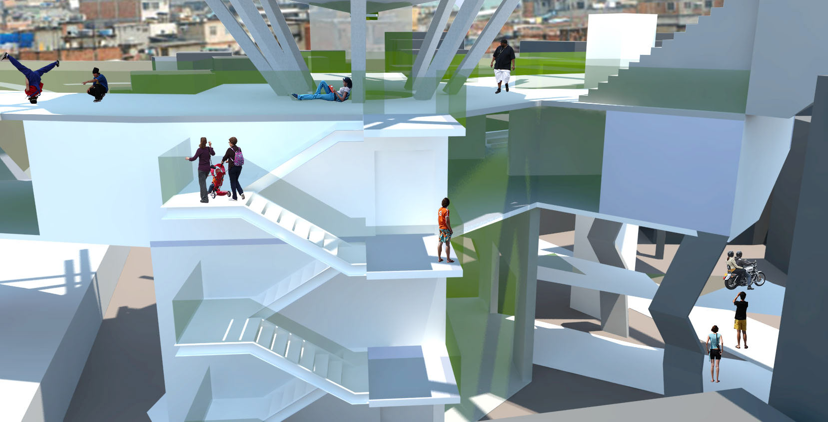 Zentral für das Projekt war ein partizipativer Planungsprozess, der sich an Methoden der Bürgerbeteiligung orientiert, wie sie in der deutschen Stadtforschung und im sozialen Wohnungsbau etabliert sind. Während mehrerer aufeinanderfolgender Samstage fanden intensive Begehungen und Workshops in der Favela statt, begleitet von Rumba, Vertreter des Gemeindezentrums. Über 30 Bewohnerinnen und Bewohner, darunter auch Kinder, wurden interviewt und aktiv in den Entwurfsprozess eingebunden. Als Ergebnis dieses Dialogs wurde ein gemeinschaftlicher Architekturwettbewerb organisiert, bei dem die Bevölkerung selbst über die Projekte abstimmte. Das Projekt Baobah – Schule für Digitale Kunst erhielt die meisten Stimmen und steht damit exemplarisch für eine Architektur, die nicht nur für, sondern mit der Gemeinschaft entwickelt wurde – im Sinne eines sozial verantwortlichen, zeitgenössischen Bauens.